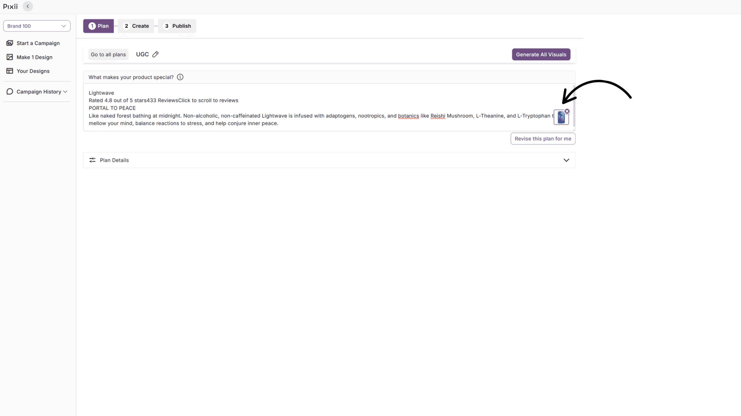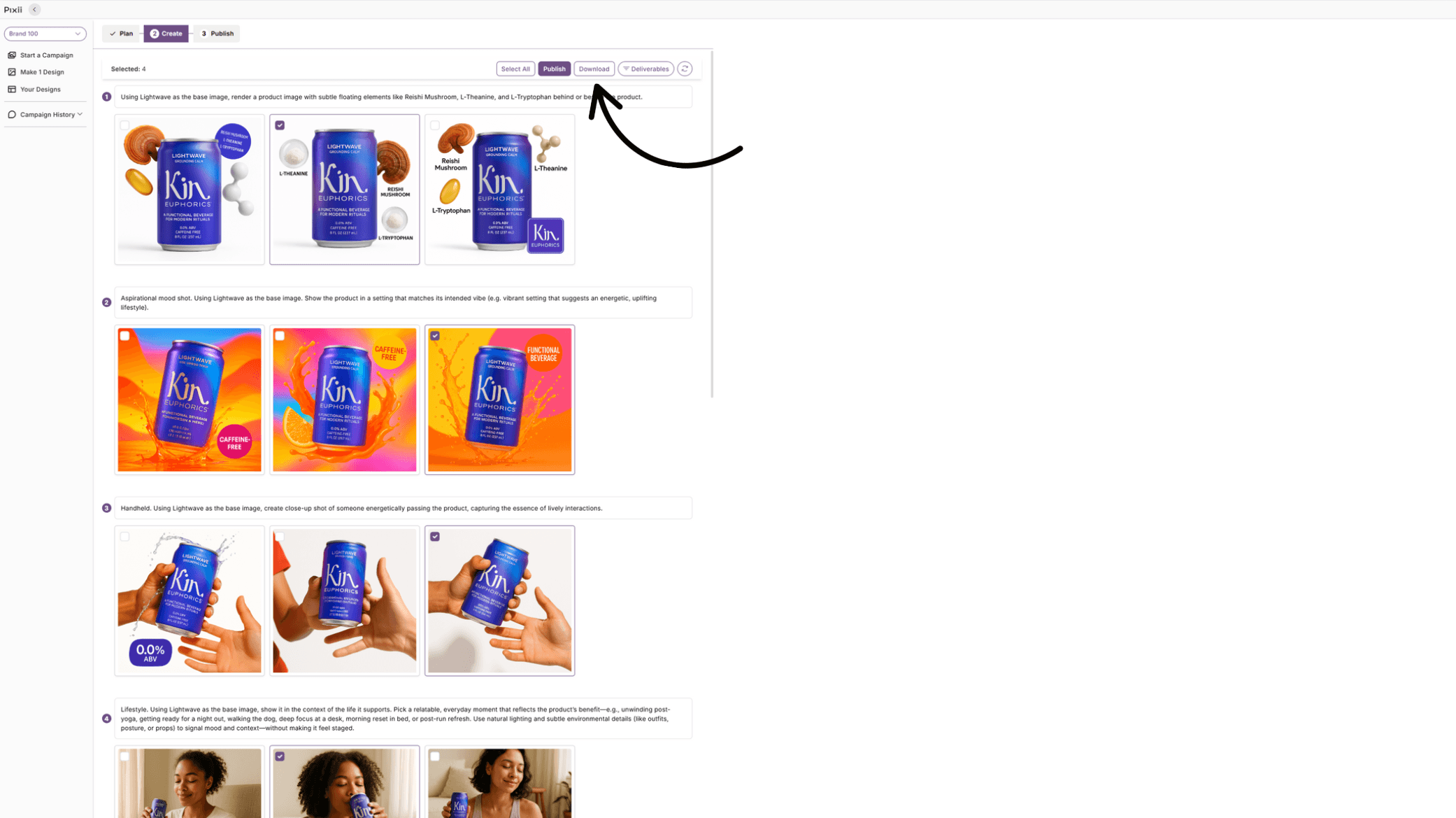 In 1 step, you get a full pack. That could be your Shopify PDP images, Amazon Images, Meta ads, or infographics.