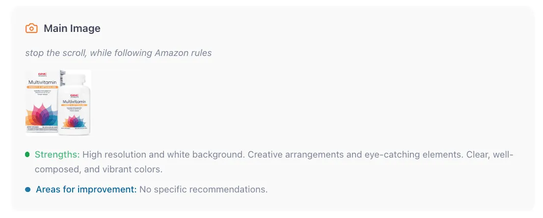 The main image is the single frame every shopper sees before they click. A sharper, more compelling hero image doesn’t just get more clicks, but gets better clicks from shoppers who already feel drawn to your product. That sets the tone for the rest of your listing and gives every other conversion lever a better shot at doing its job.